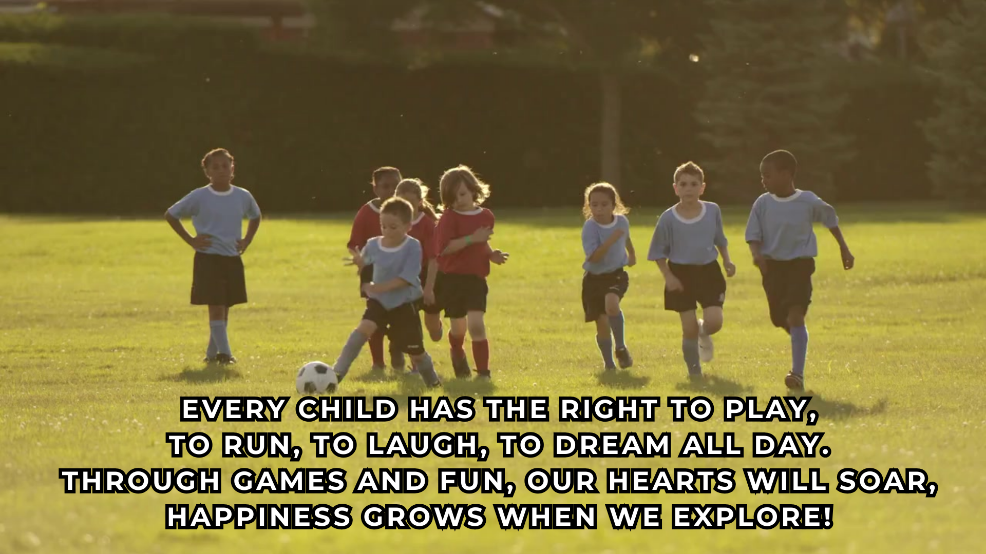 Every child has the right to play, To run, to laugh, to dream all day. Through games and fun, our hearts will soar, Happiness grows when we explore!